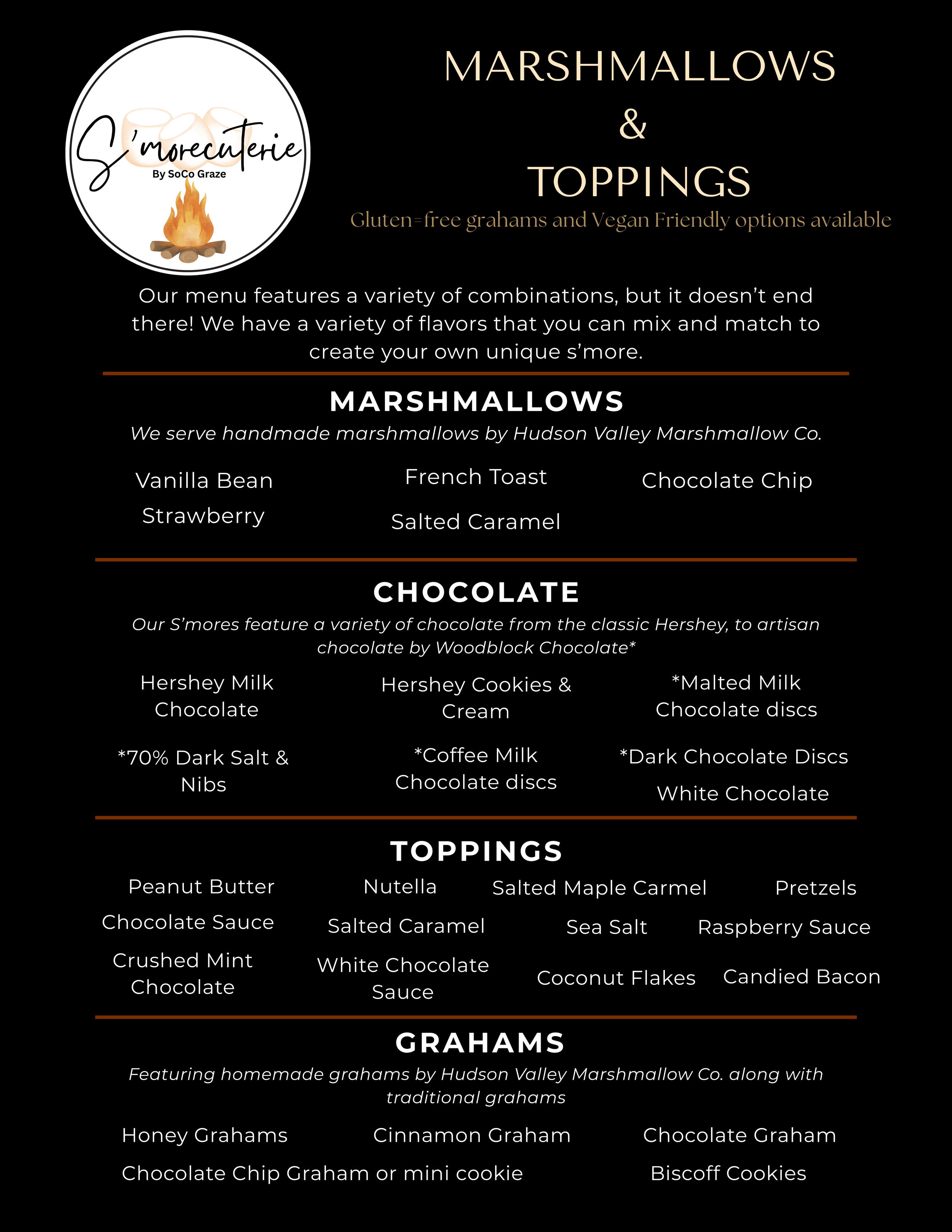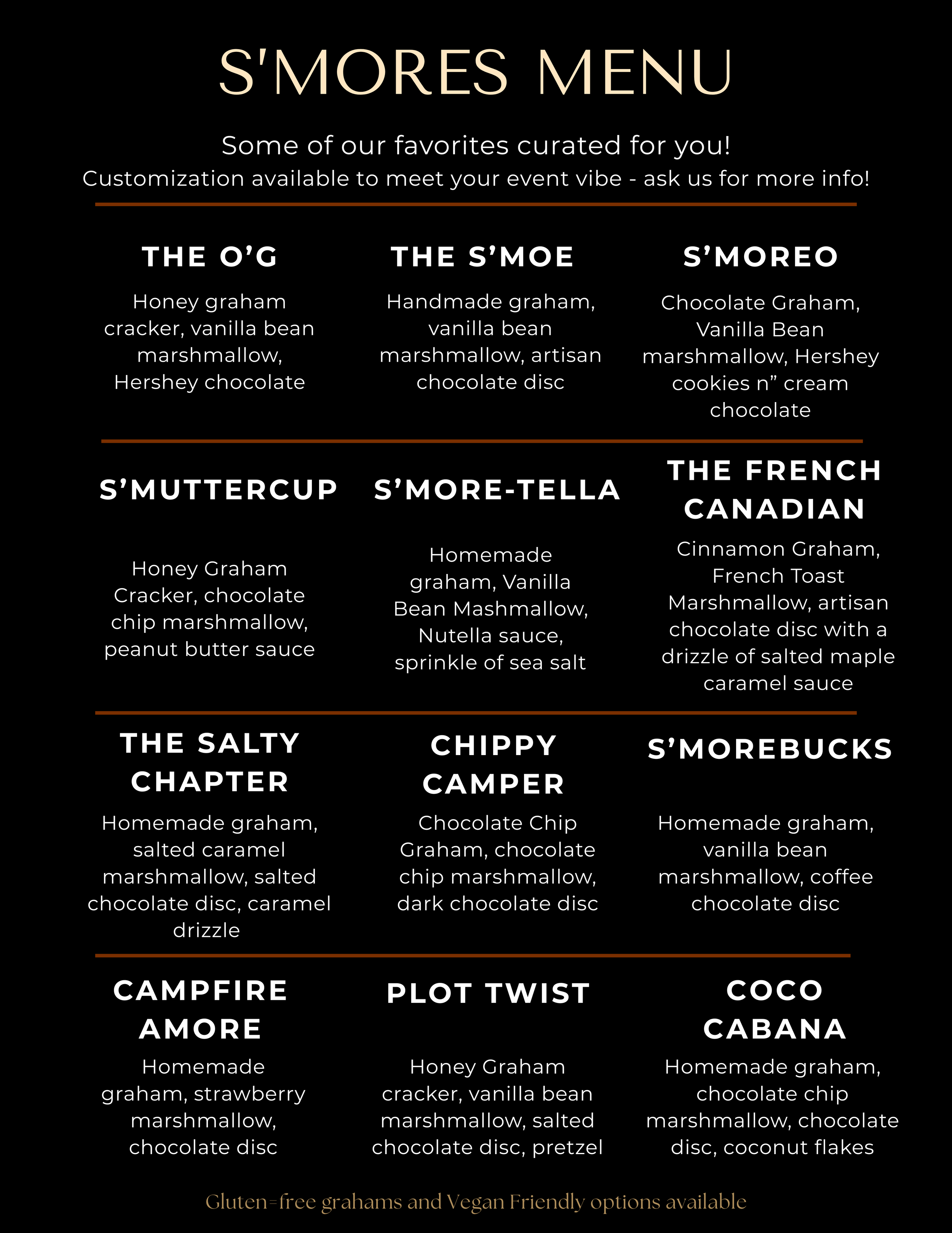 Choice of up to three s’mores flavors from our curated menu